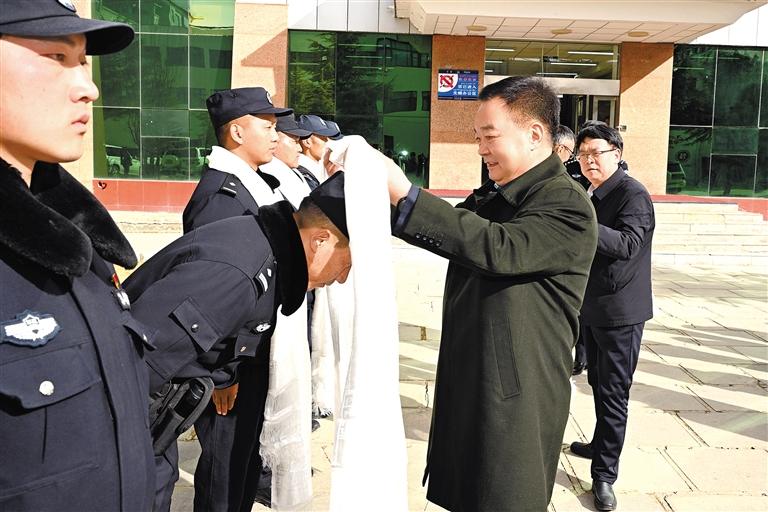 藏历新年到来之际,自治区党委书记王君正深入基层看望慰问干部群众和一线建设者。这是王君正在山南市乃东区公安局看望慰问一线公安干警。