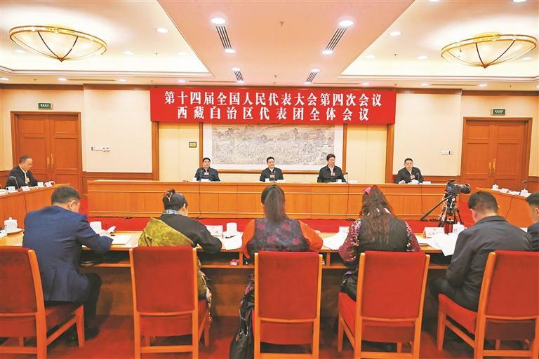 西藏代表团举行全体会议审议全国人大常委会工作报告等洛桑江村参加王君正主持并讲话严金海嘎玛泽登发言